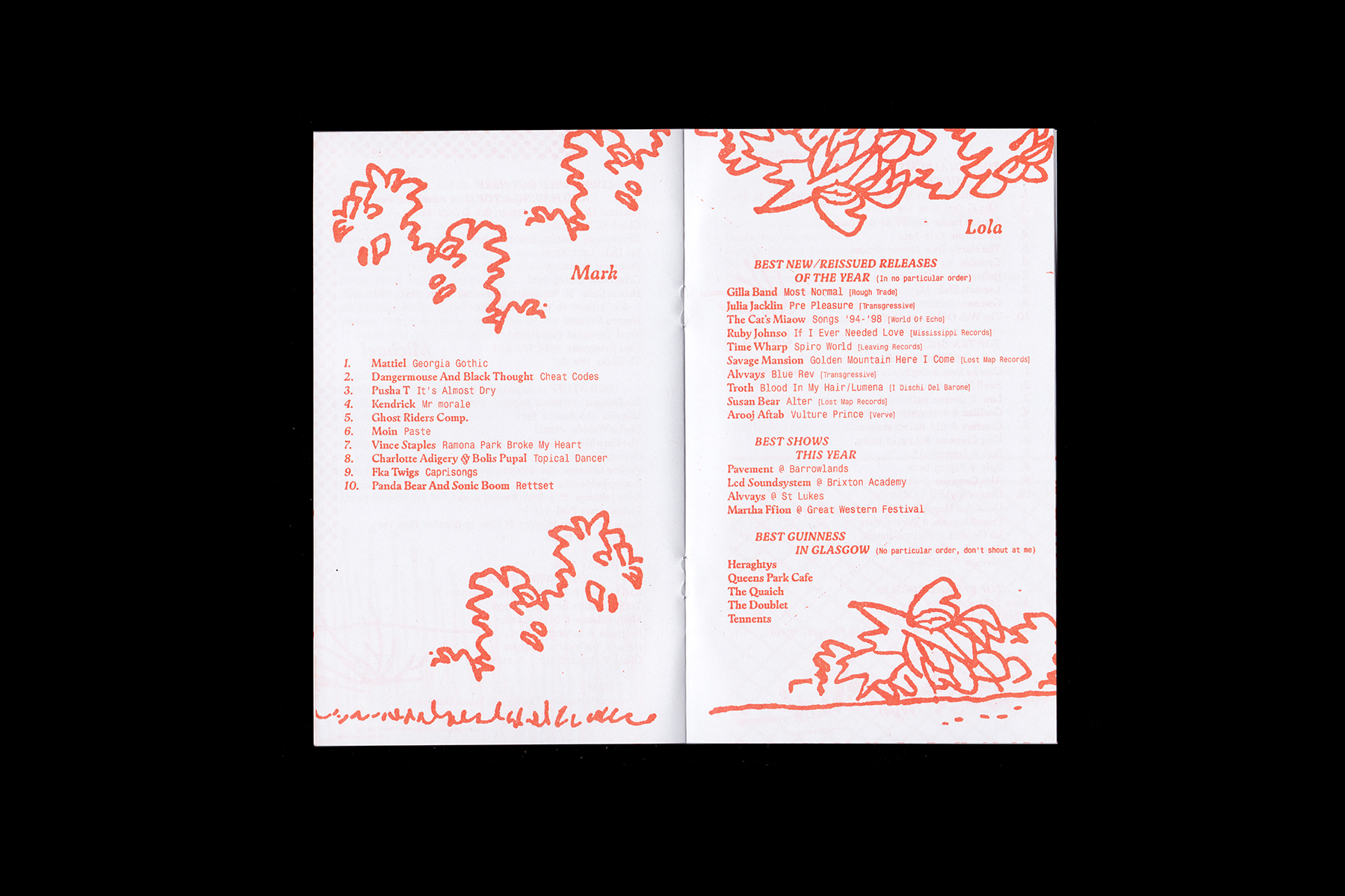 Publication design and print for Monorail Music 2022 Staff Favourites.